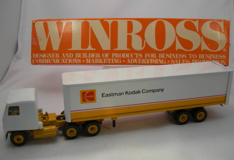 TP24A Peterbilt bakwagen Zeer zeldzaam pre-productiemodel van de TP 24 in rood met "KODAK"-opschrift. Al zo weergegeven in de catalogus van 1979, maar nooit verschenen omdat Kodak de licentie ervoor weigerde. Grote zeldzaamheid van 1-75, slechts enkele "KODAK"-modellen zijn bewaard gebleven.