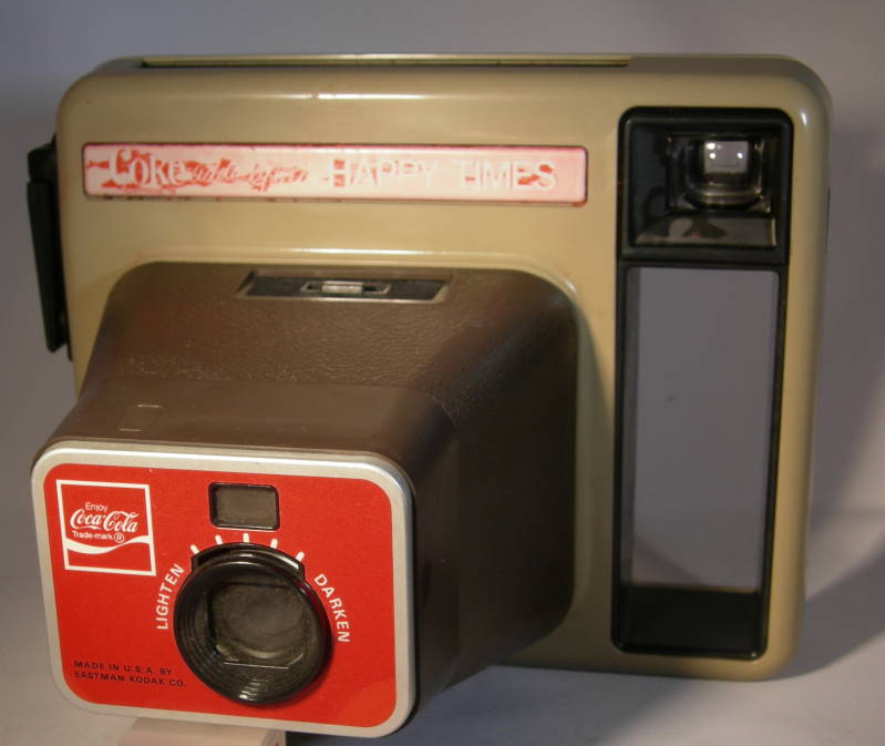 Kodak Happy Times (Coca-Cola) Camera, the Happy Times is a special premium version of Kodak's "The Handle". The only differences are the nameplates and colour of the camera.