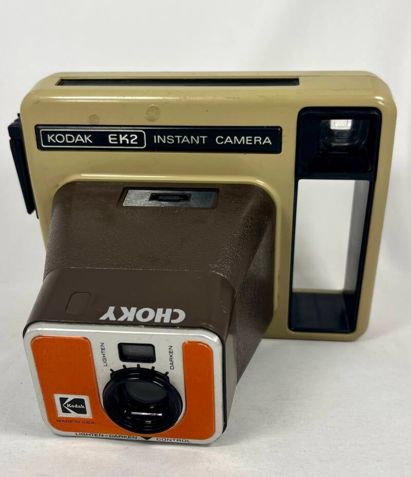 De camera op de afbeelding is een Kodak EK2 Instant Camera. Deze camera, ook bekend als "The Handle" in sommige markten, werd geproduceerd tussen 1977 en 1979.